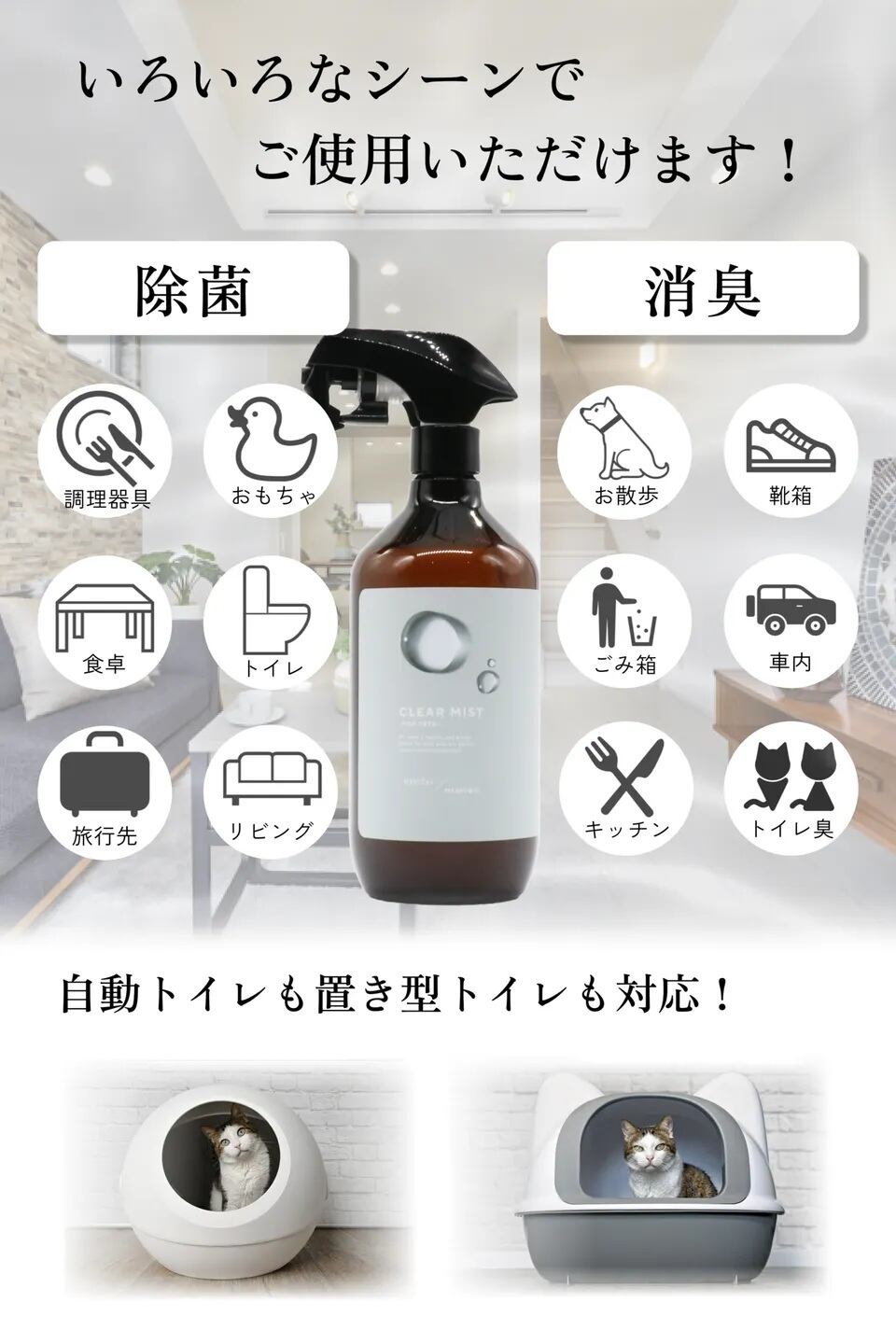 ■臭いの気になるペットのトイレまわり、ソファーやカーペット、