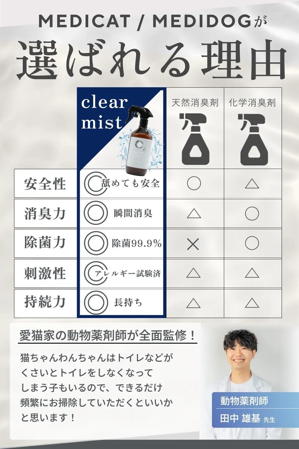 安心して強力消臭・除菌ができる消臭剤を実現しました。